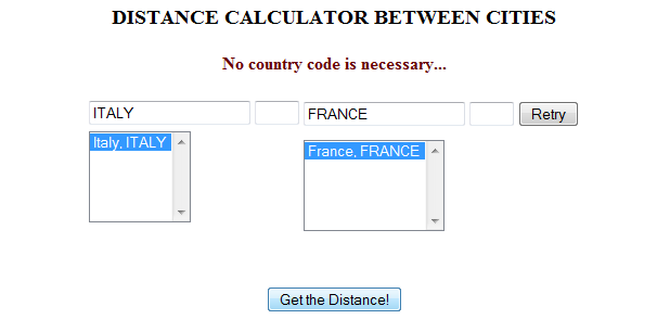 3. לחץ בשנית על Get the Distance ולפניך יופיע המרחק המדוייק בין איטליה לצרפת ומיקום היעדים על המפה,